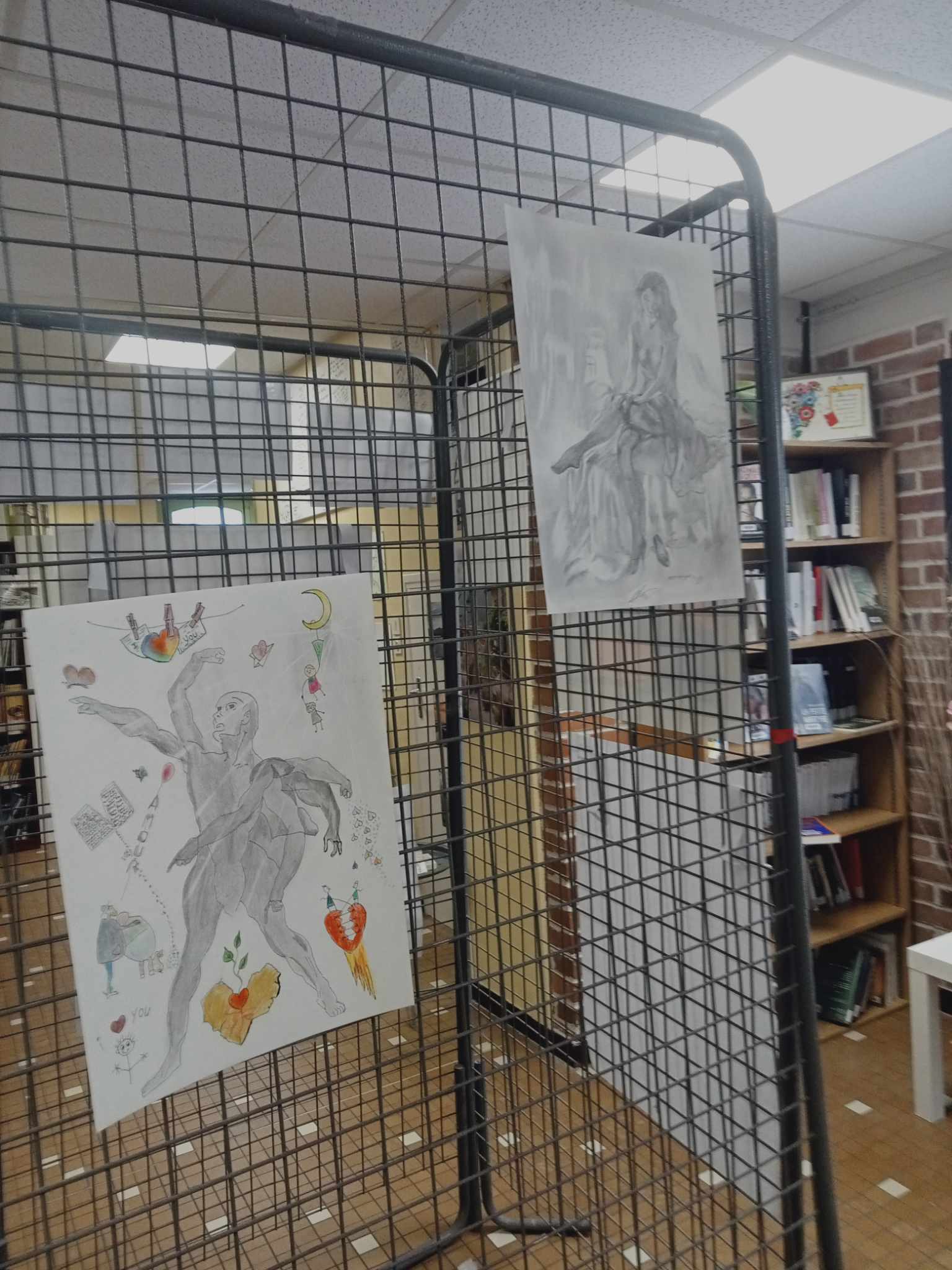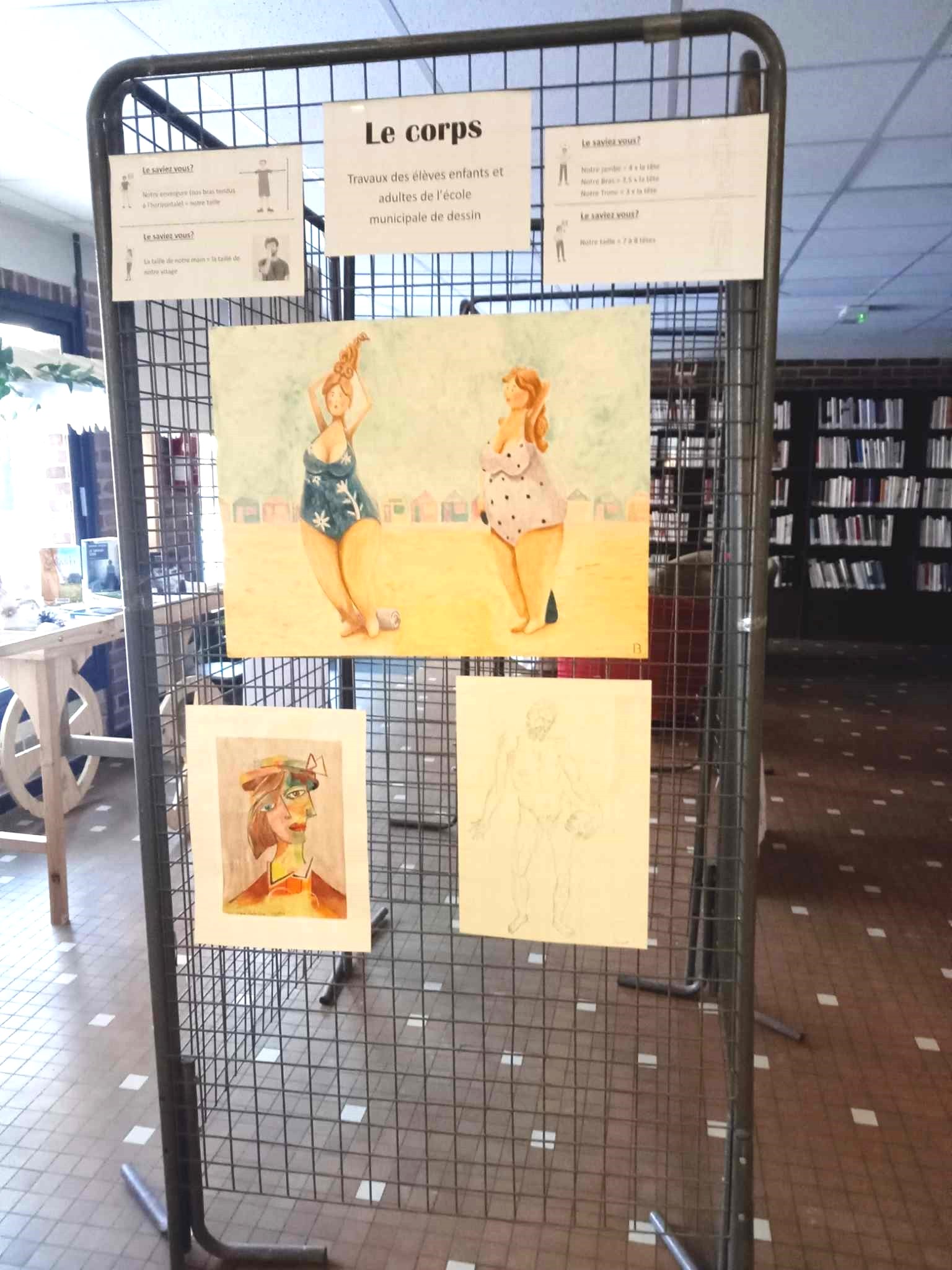 En parallèle de cet atelier, les élèves de l'École Municipale de dessin ont proposé, du 20 au 25 janvier en bibliothèque, une exposition de leurs œuvres autour du corps, tous les corps.